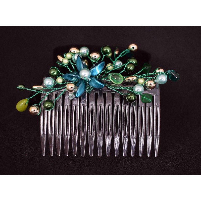 | Compositions | perles, fil d'aluminium, peigne à chignon en plastique |