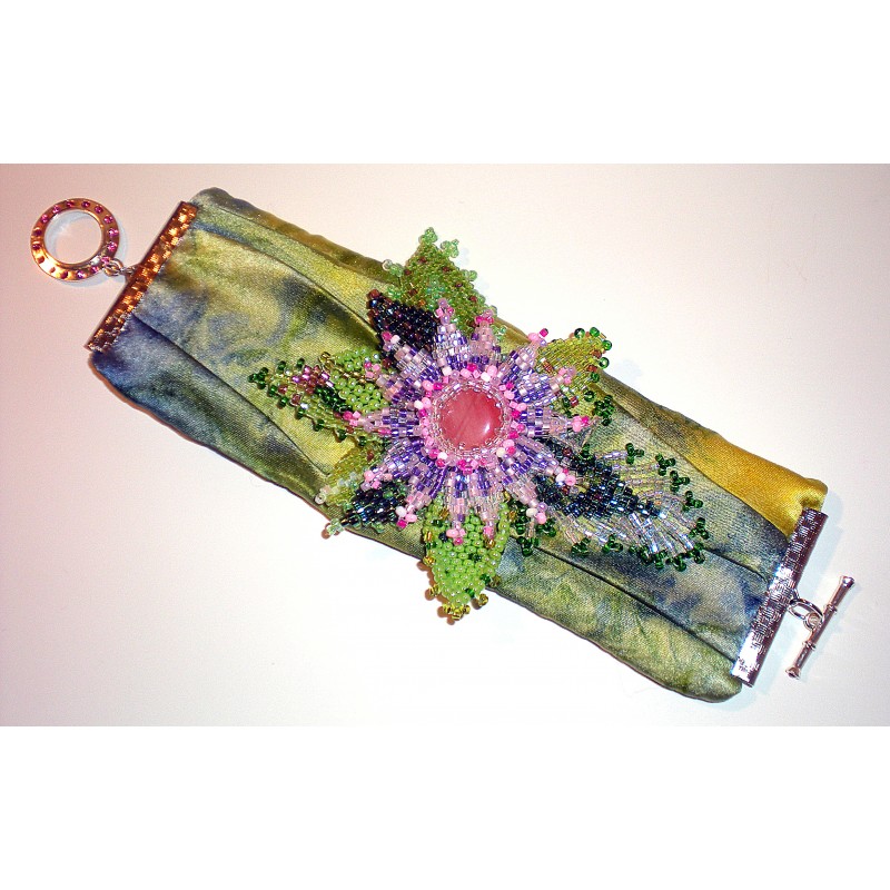 Bracelet réalisé en tissu plissé et peyote.