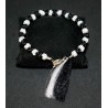 Bracelet en queue de rat satiné noir et blanc, noeuds chinois "boules" et pompon