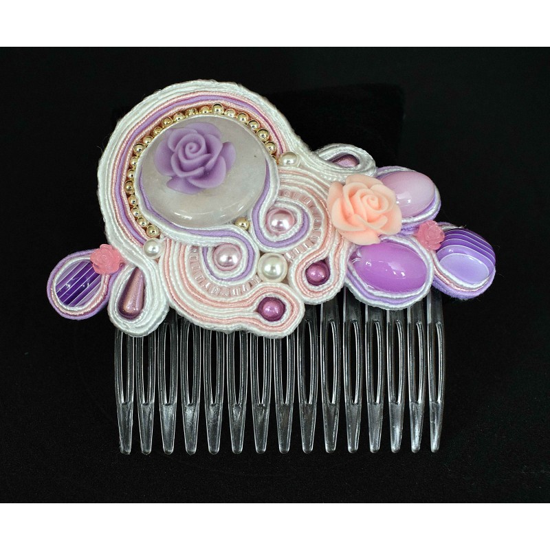 Peigne à cheveux transparent en soutache et perles diverses