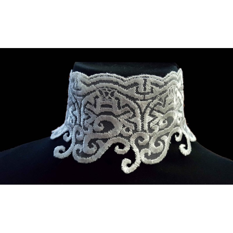 L'éclat de la magnifique dentelle de Calais, en fait un bijou très féminin, chic et intemporel. Idéal pour mettre en valeur votre buste et votre décolleté.