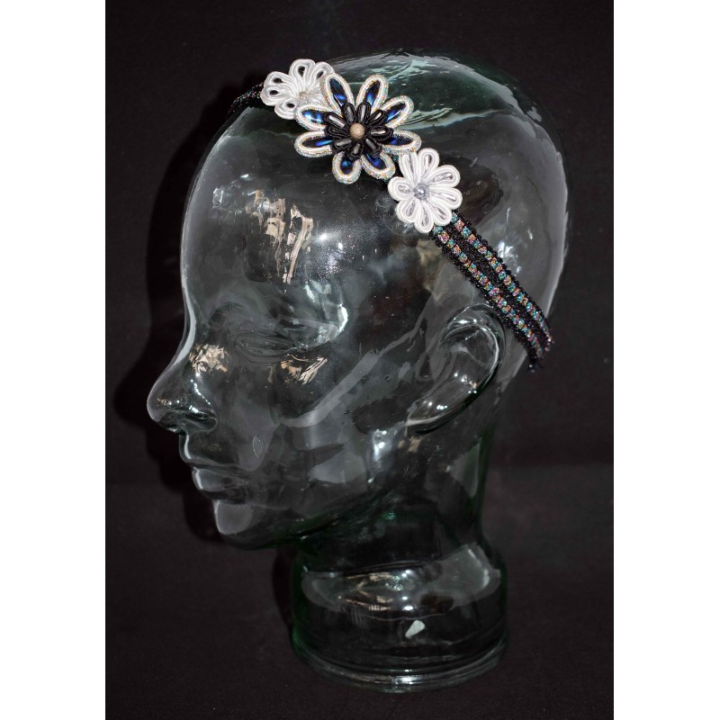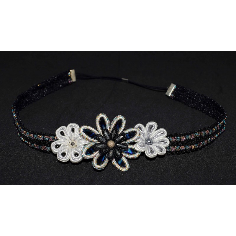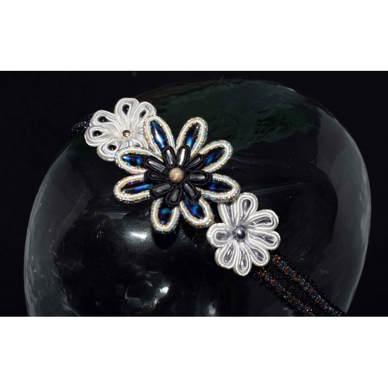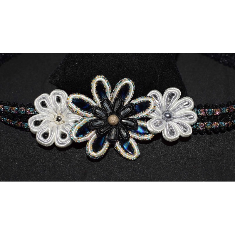 Bijou de tête en soutache aux 3 fleurs aux diverses perles
