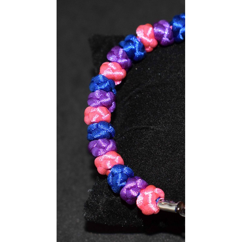Bracelet en queue de rat satiné rose, violet et bleu, noeuds chinois "boules" rose, bleu, mauve