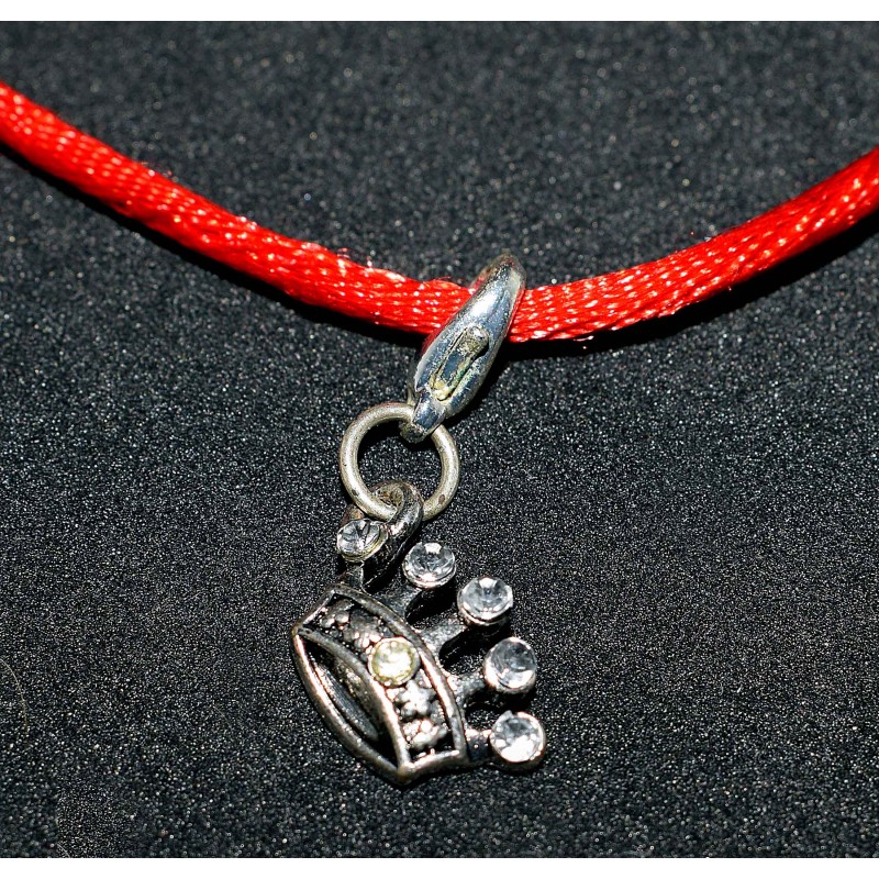 Ce magnifique bracelet en noeud chinois est fait d'un cordon queue de rats satiné rouge orné d'une breloque couronne