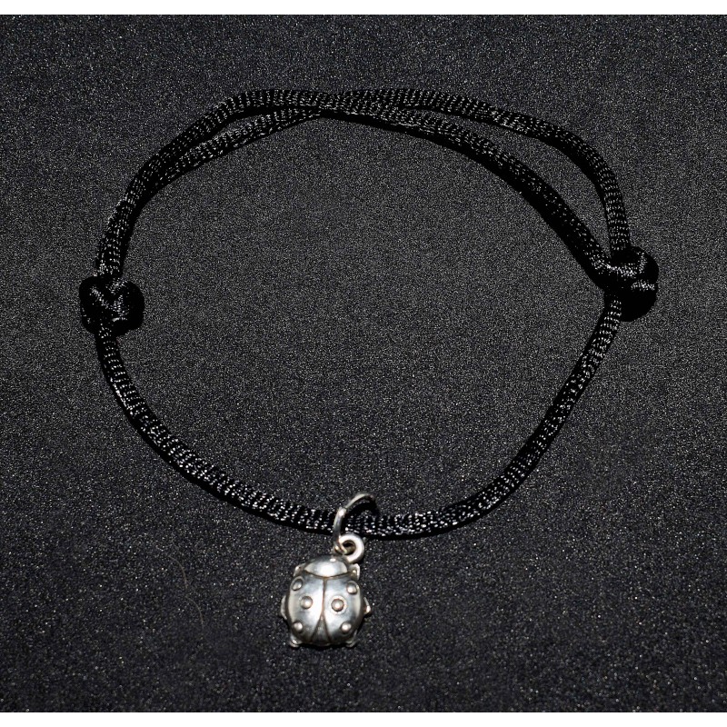 Ce magnifique bracelet en noeud chinois est fait d'un cordon queue de rats satiné noir orné d'une breloque coccinelle