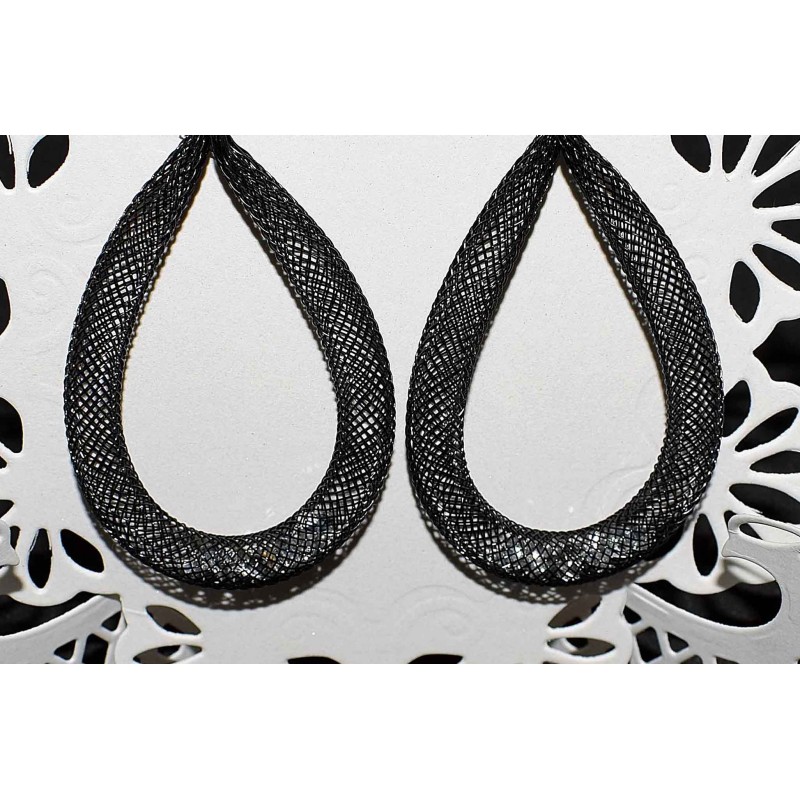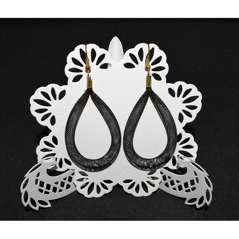 Voici des boucles d'oreille réalisées avec une résille noire décorée de petit strass cristal.