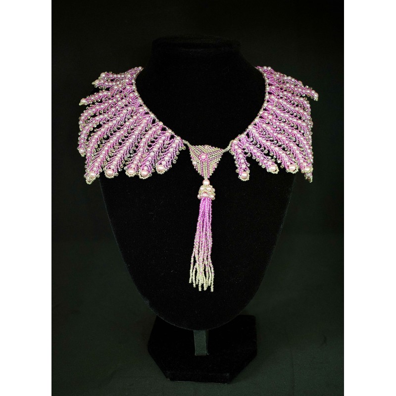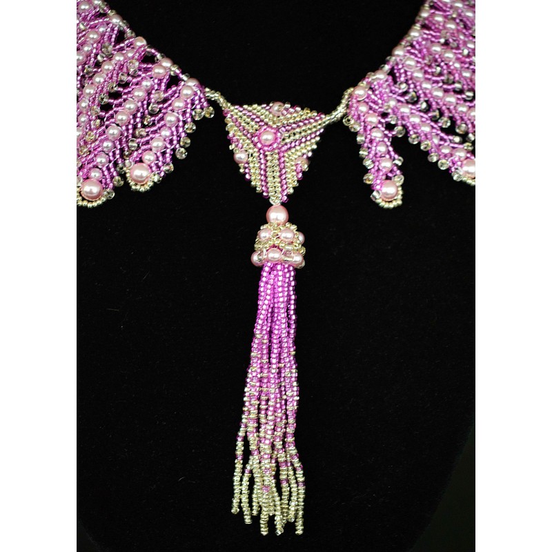 Voici un magnifique col réalisé en perles de rocailles roses et argent et perles fines roses. Il saura, à coup sur, réveiller une tenue et sera l'allié idéal de vos soirée, fêtes........Le petite touche originale qui saura vous rendre encore plus unique et inoubliable.