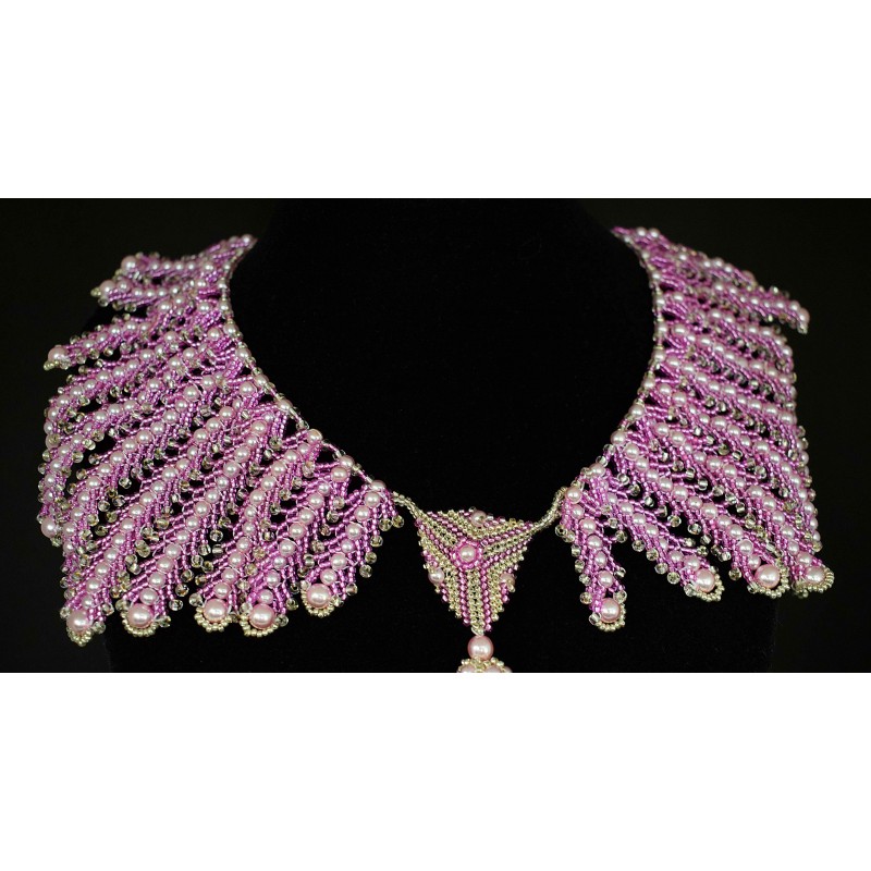 | Compositions | perles de rocailles roses et argent et perles fines, crochet |