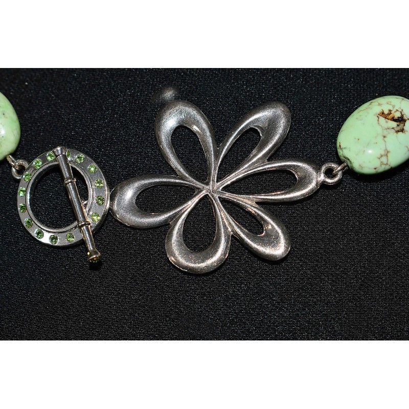 Le fermoir est un fermoir "T" strassé de délicats strass verts.