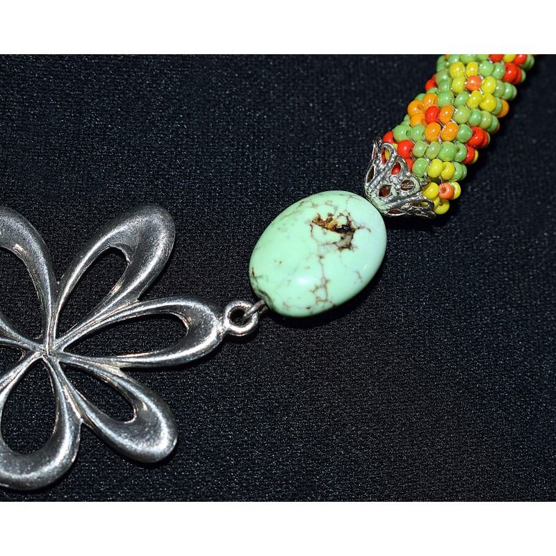 Collier en peyote au couleur printanière, sa turquoise verte.