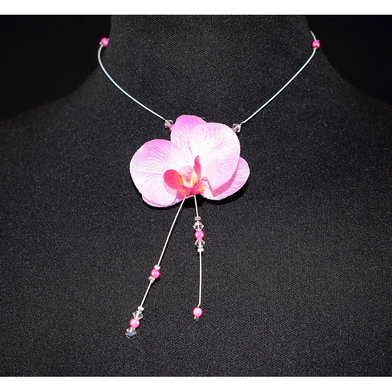 Voici un collier poétique pour toutes celles que aiment les fleurs et notamment les orchidées.