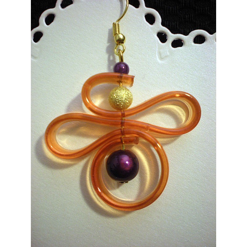 Voici des boucles d'oreille réalisées en lacet plastique orange.