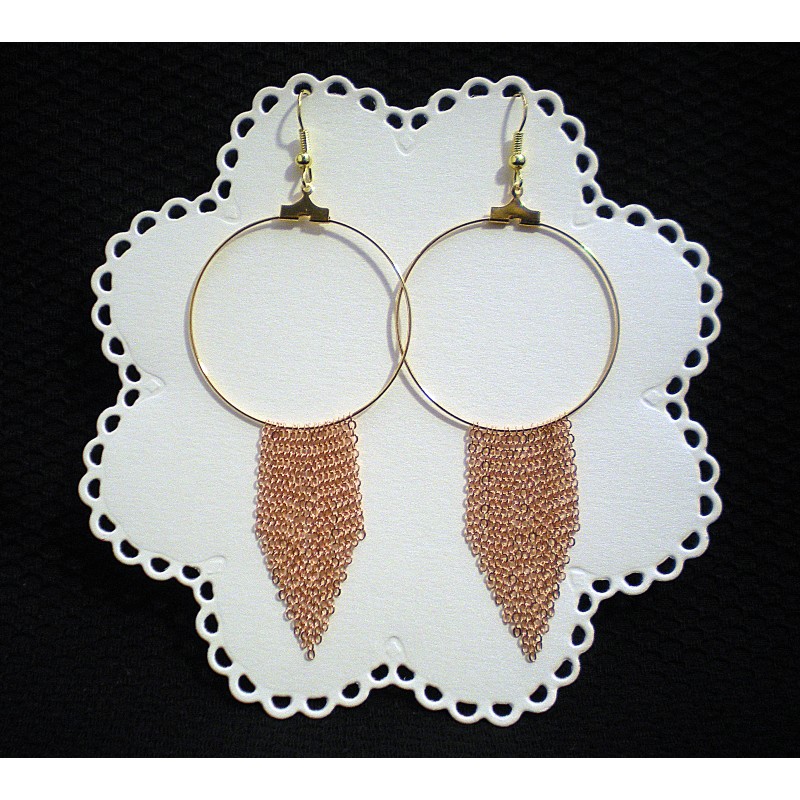 Ravissantes et délicates boucles d'oreille "créole" de 40 mm en plaqué or et ses petites chaines en plaqué or rose.