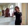 Epaulette en chaine plaqué argent texturée et perles facettées noires en verre